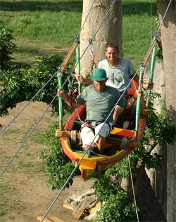 The one hour trip is the ‘All public’ level. (10 years and above or a minimum of 1.40m height required). It takes place between 10 and 17 meters above the ground under the permanent supervision of a professional. Throughout the journey, the client is always safe and attached to a double lanyard and lifeline system. Several levels of difficulty for thrill seekers.
